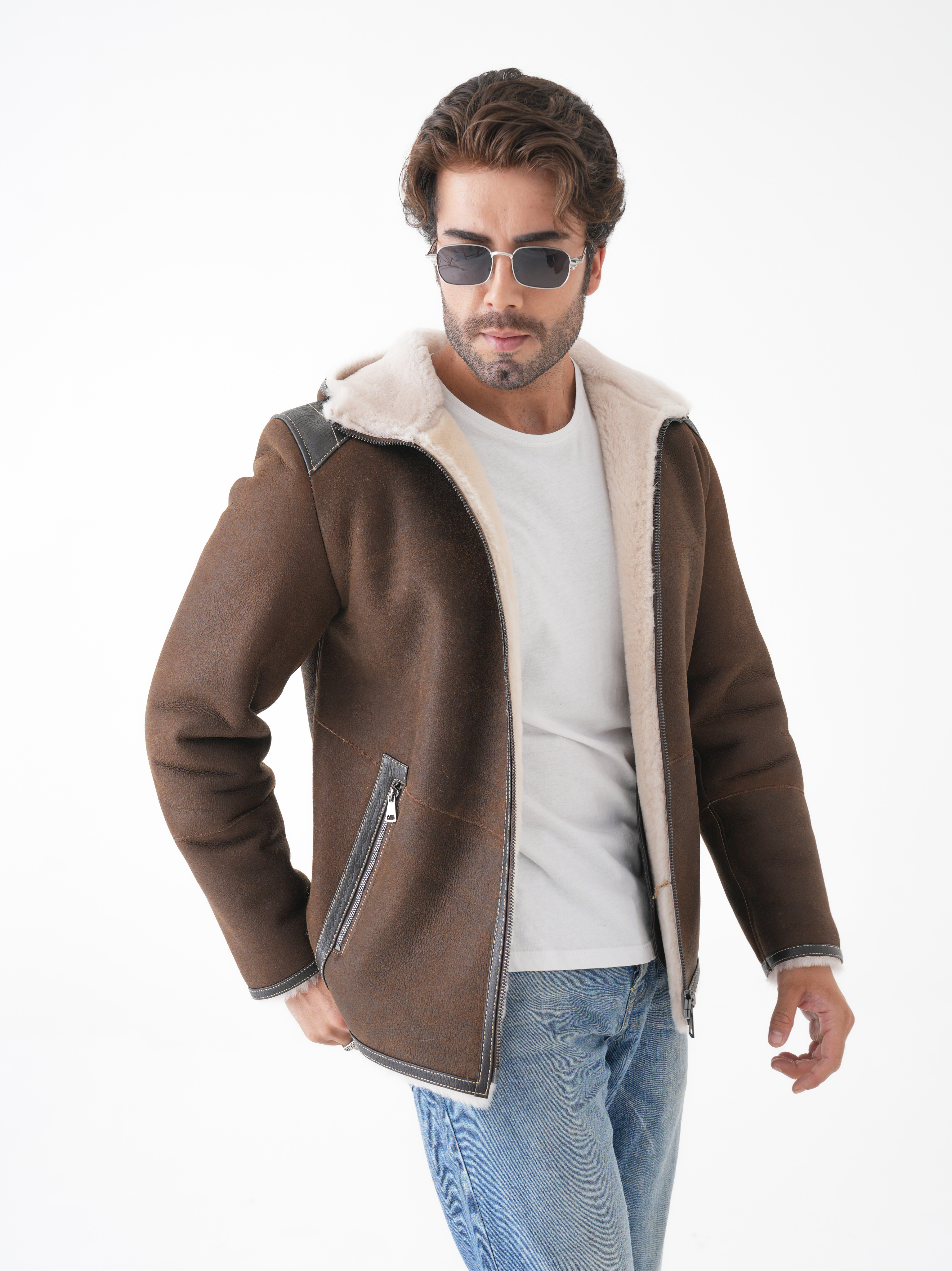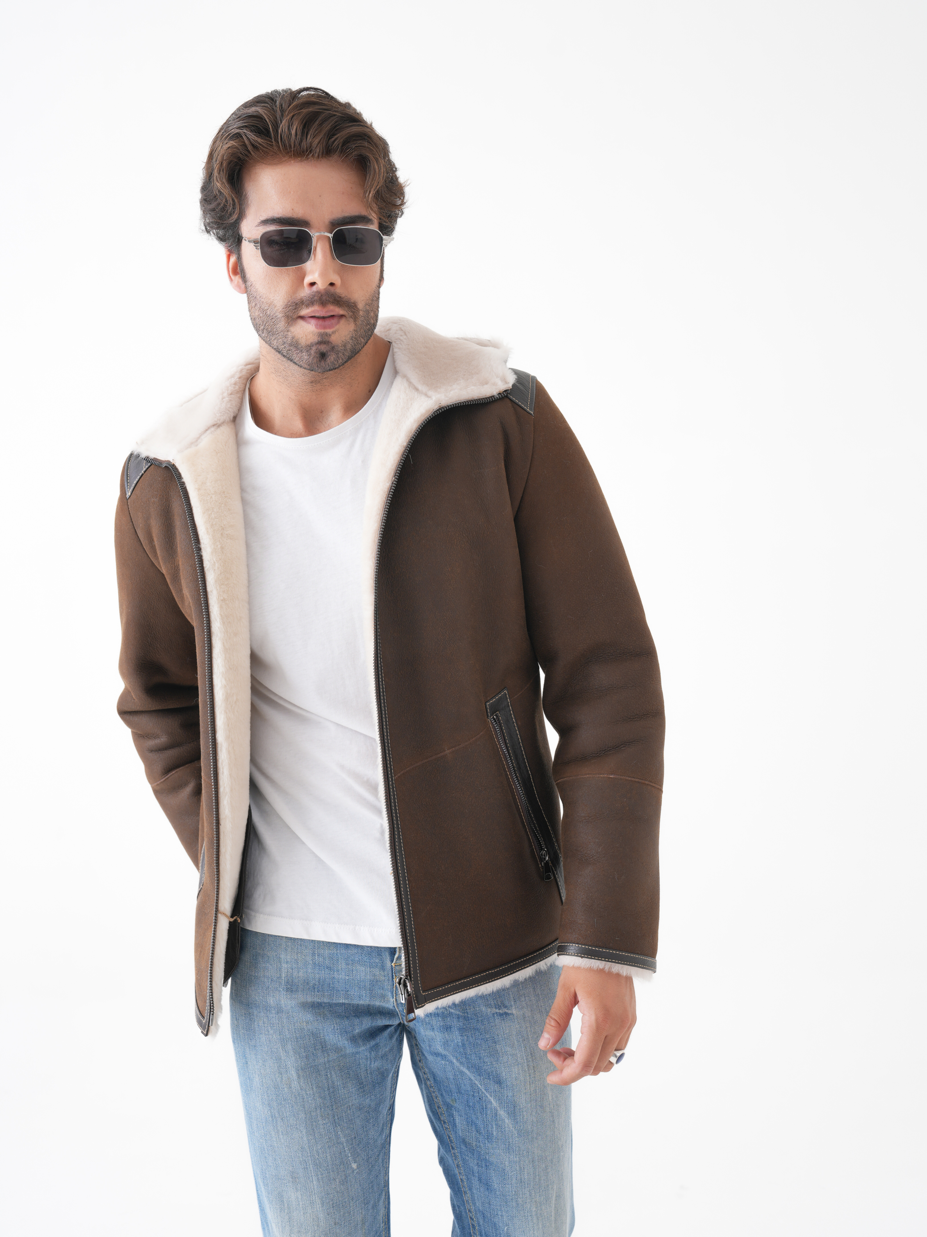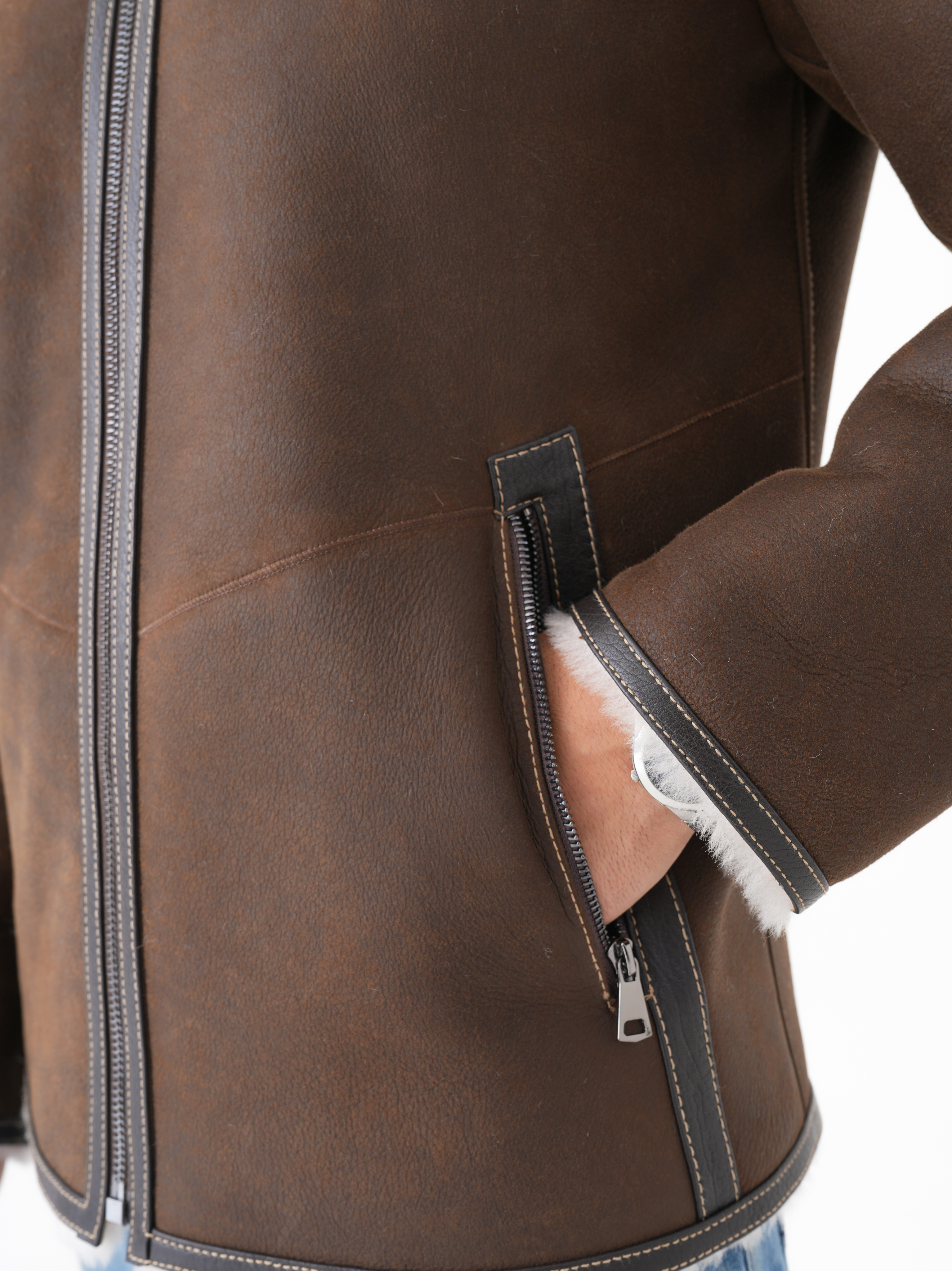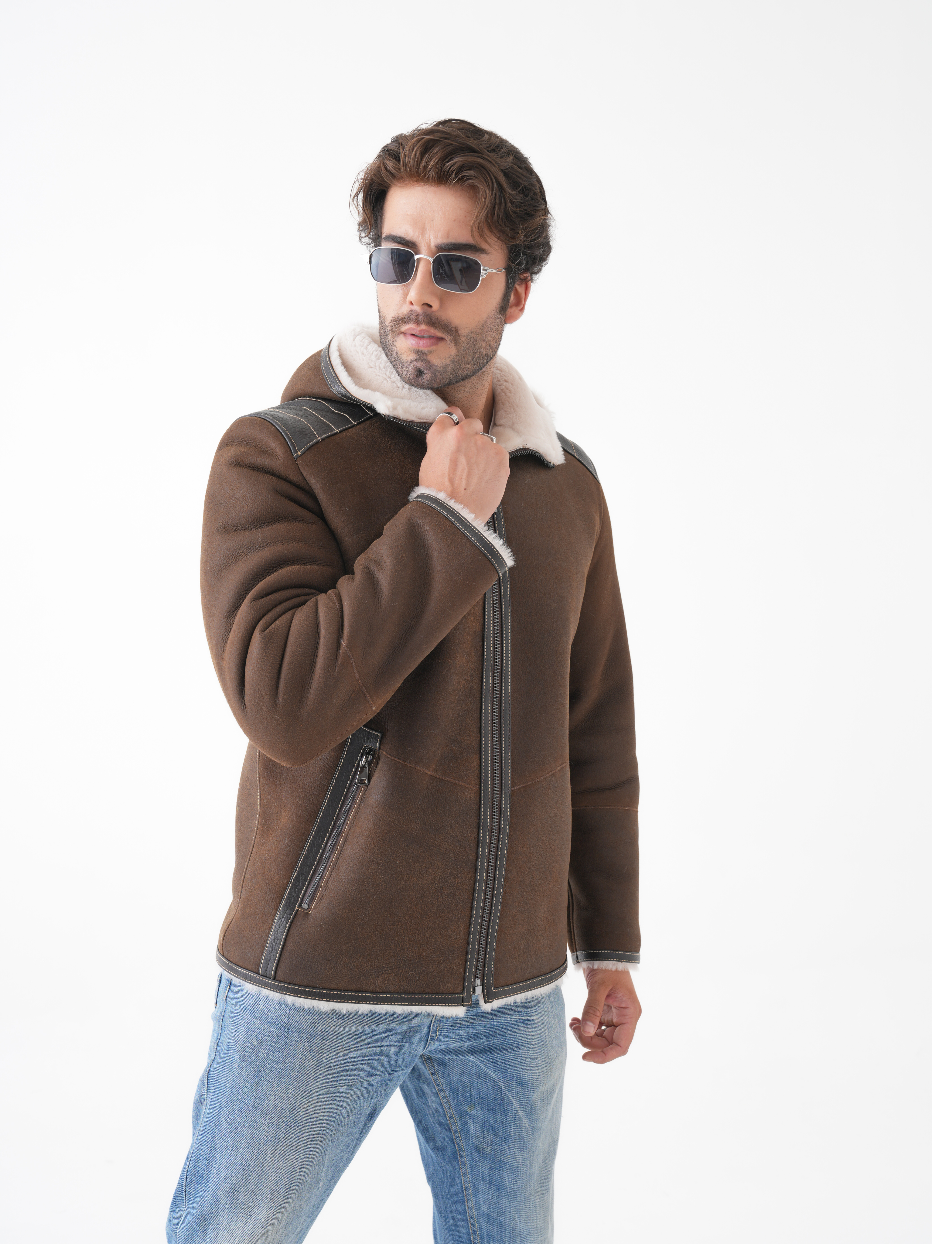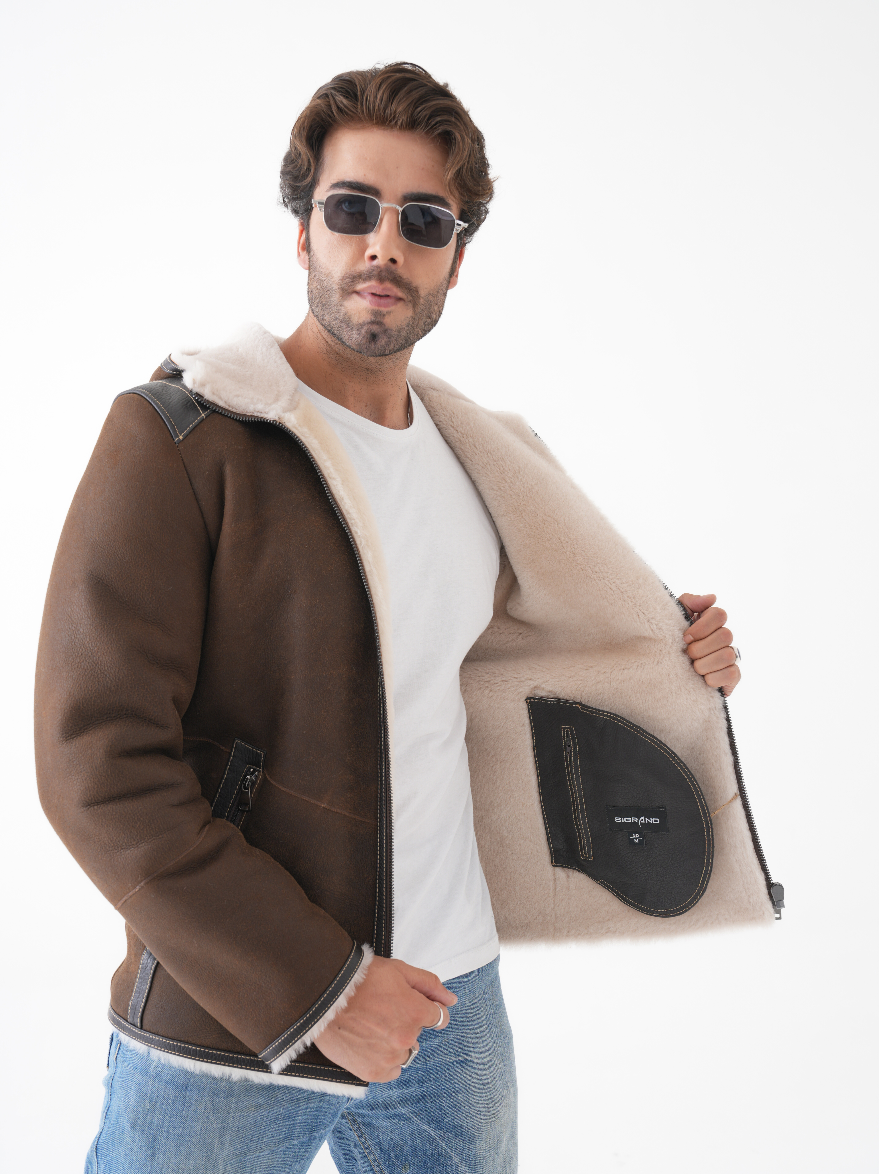 Мужская дублёнка KHIMEONE – надёжный спутник зимой! Отложной воротник добавляет элегантности, а натуральный мех овчинны обеспечивает тепло при температуре от 0°C до -20°C. Прорезные карманы на кнопках практичны и удобны. Молния гарантирует комфортное надевание и идеальную защиту от ветра. Производство Турции, бренд России. Стильный и тёплый выбор для зимы!