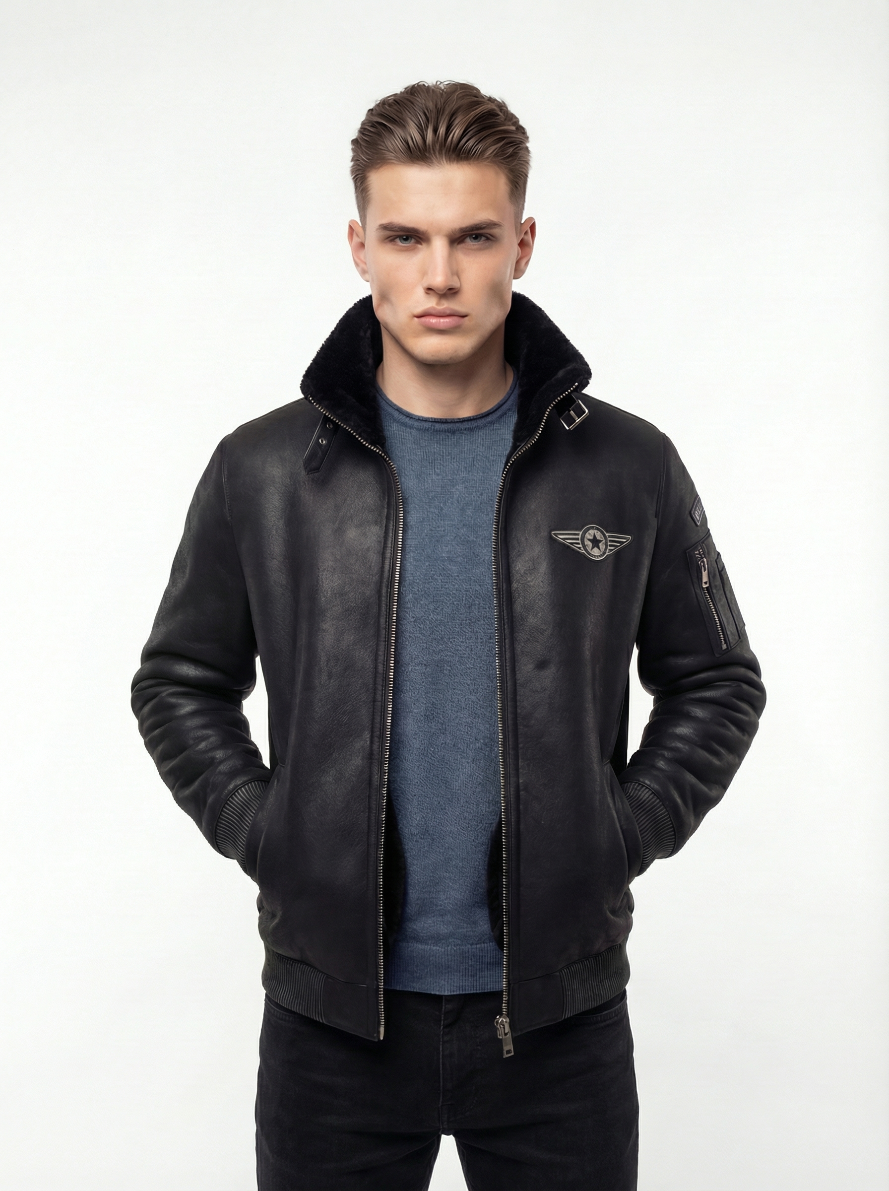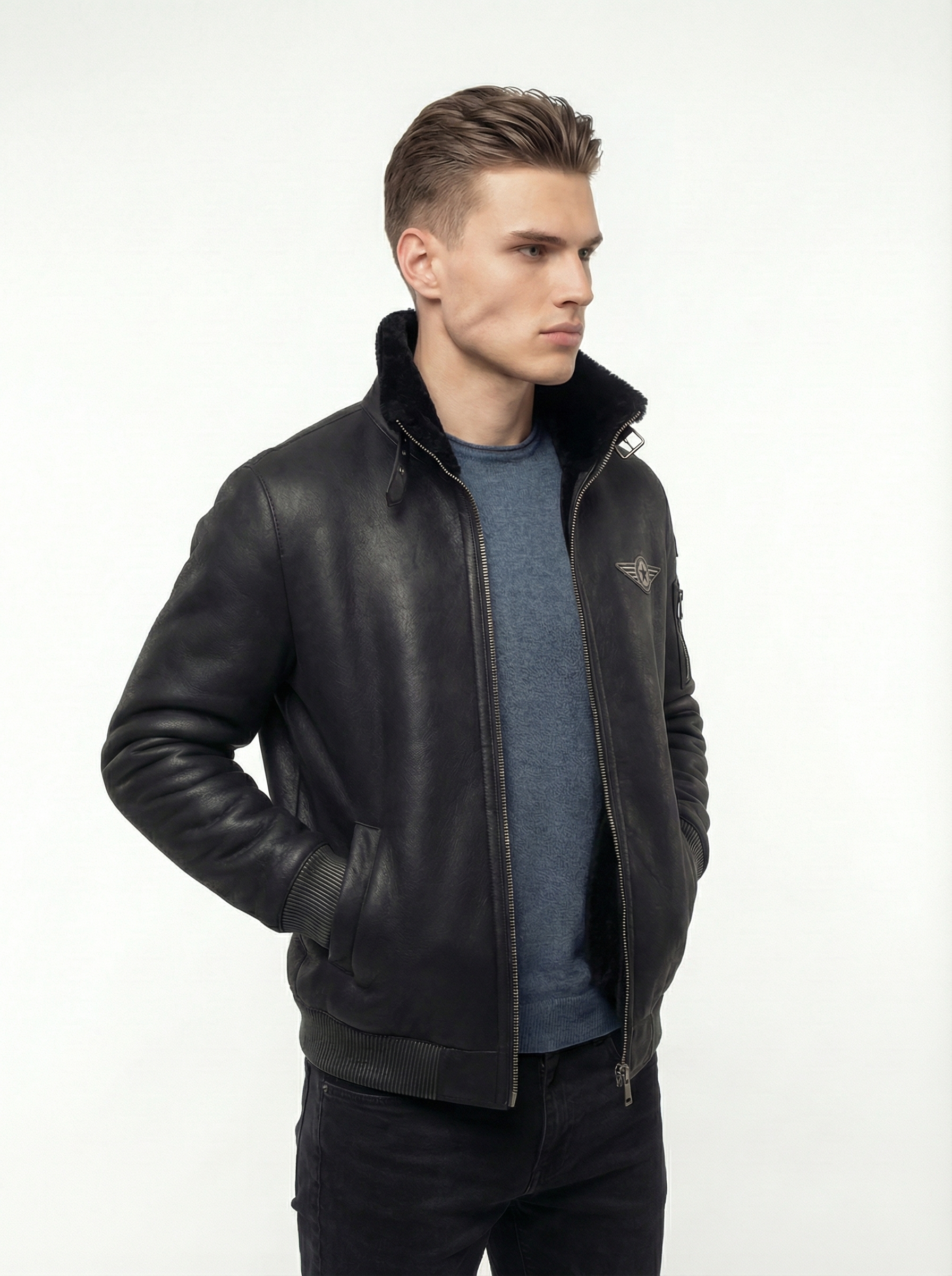 Классика авиационного стиля в современном исполнении. Эта дубленка — идеальное сочетание брутального дизайна и бескомпромиссного тепла. Модель выполнена в стиле культовых курток «пилот», что делает её универсальным элементом гардероба: она одинаково хорошо смотрится как с джинсами, так и с более строгими брюками.