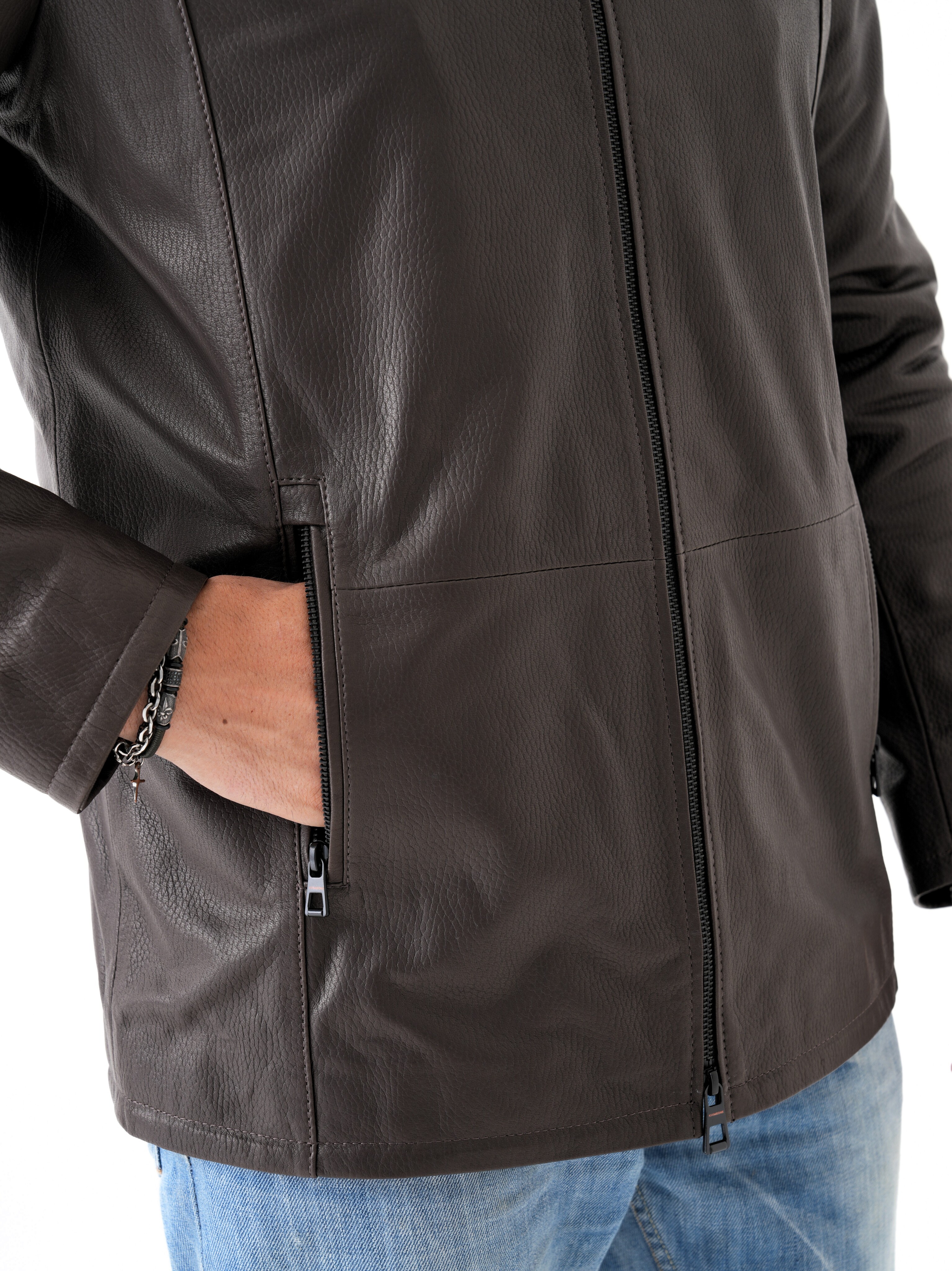 Куртка кожаная KHIMEONE - это стильный и практичный выбор для прохладной осенней погоды. Изготовленная из натуральной кожи с зернистой фактурой, она обеспечивает комфорт и защиту от ветра. Удлиненный покрой закрывает пиджак, обеспечивая дополнительное тепло, а двойная молния позволяет регулировать уровень комфорта. Модель оснащена прорезными карманами на молнии, удобными для хранения мелочей, и рукавами, регулируемыми по длине. Синтепоновый утеплитель плотностью 30 г/кв.м. обеспечивает оптимальный температурный режим от +5 °C до +15 °C. Куртка KHIMEONE - это идеальный вариант для мужчин, ценящих качество, стиль и комфорт в повседневной жизни