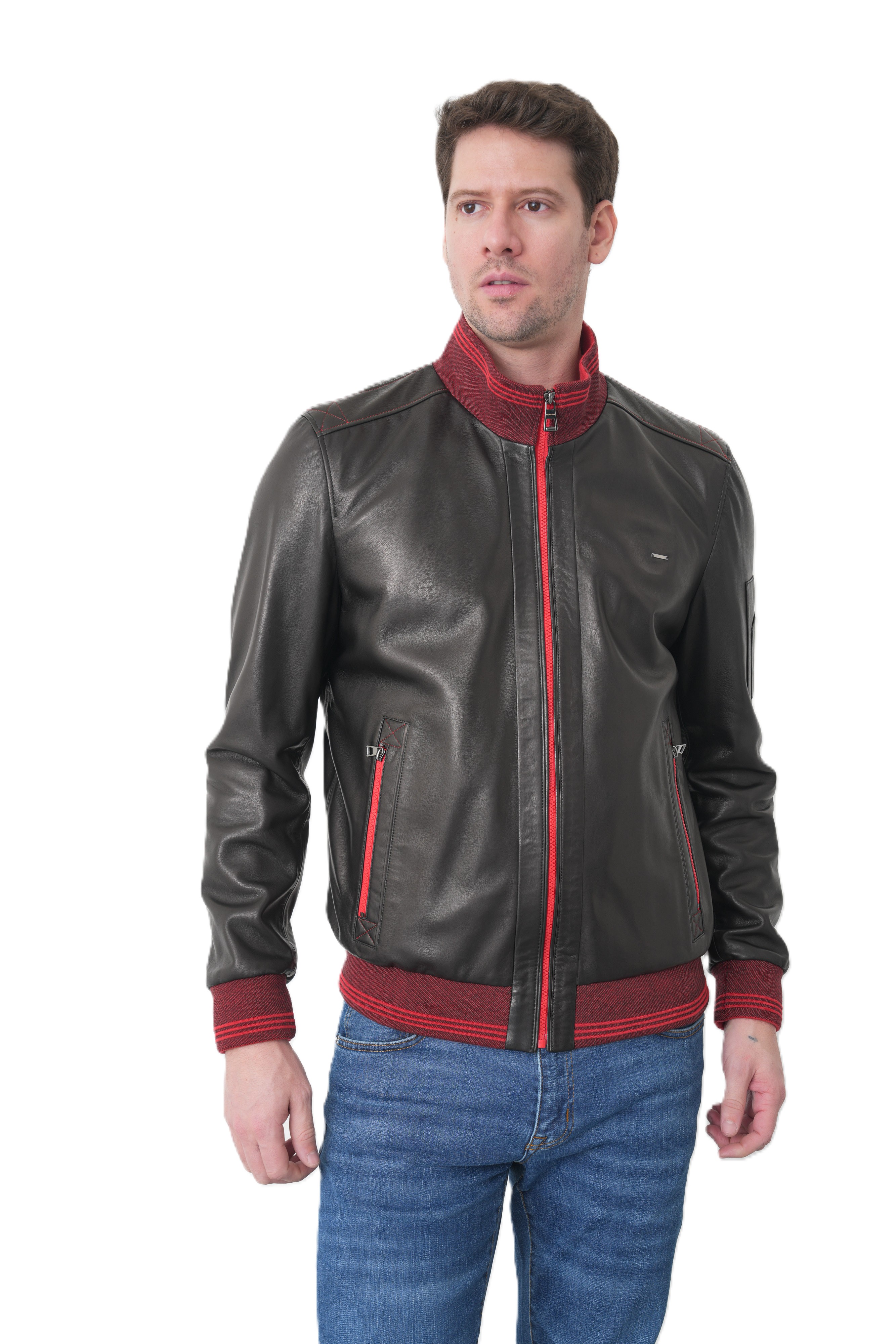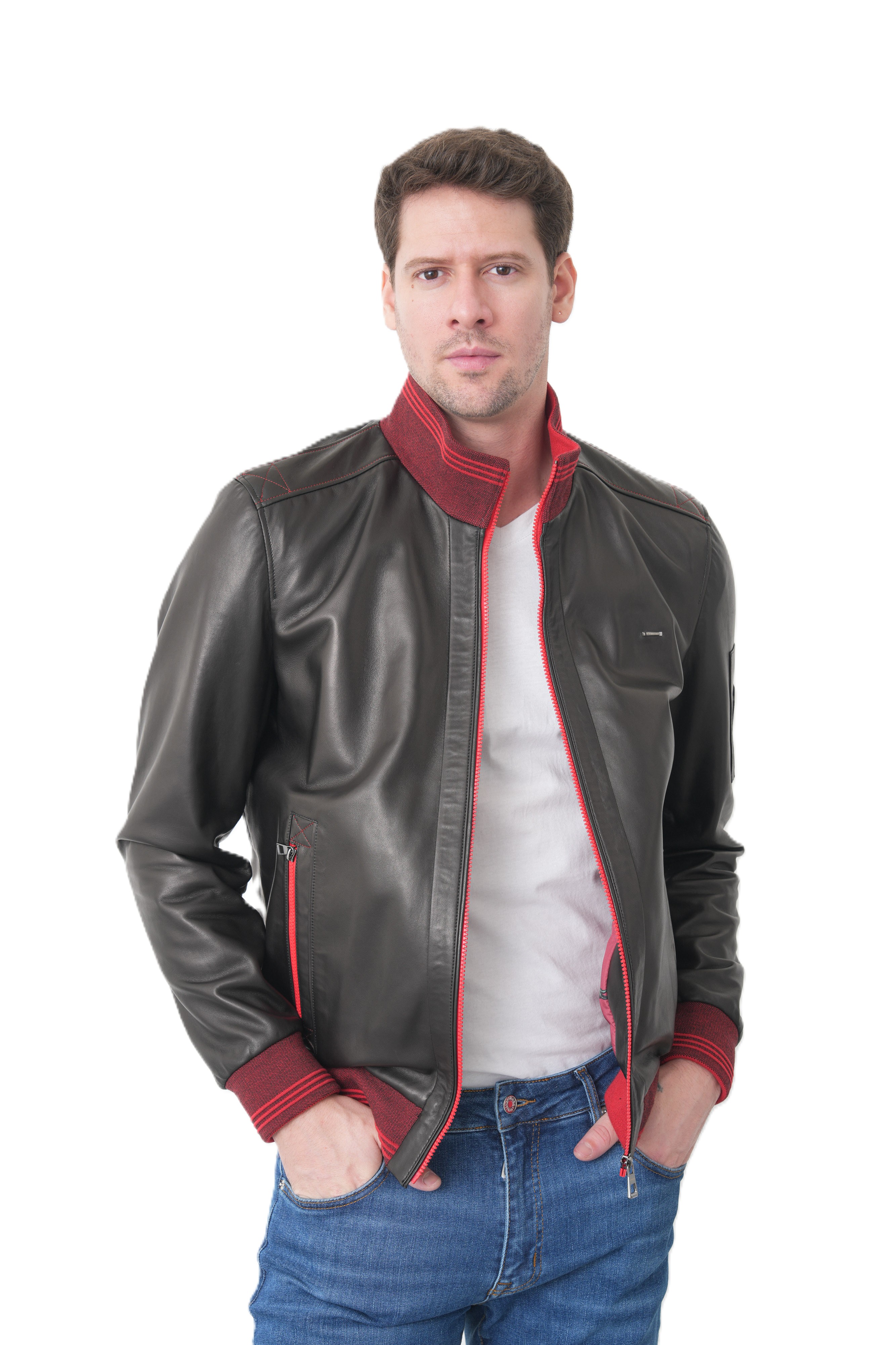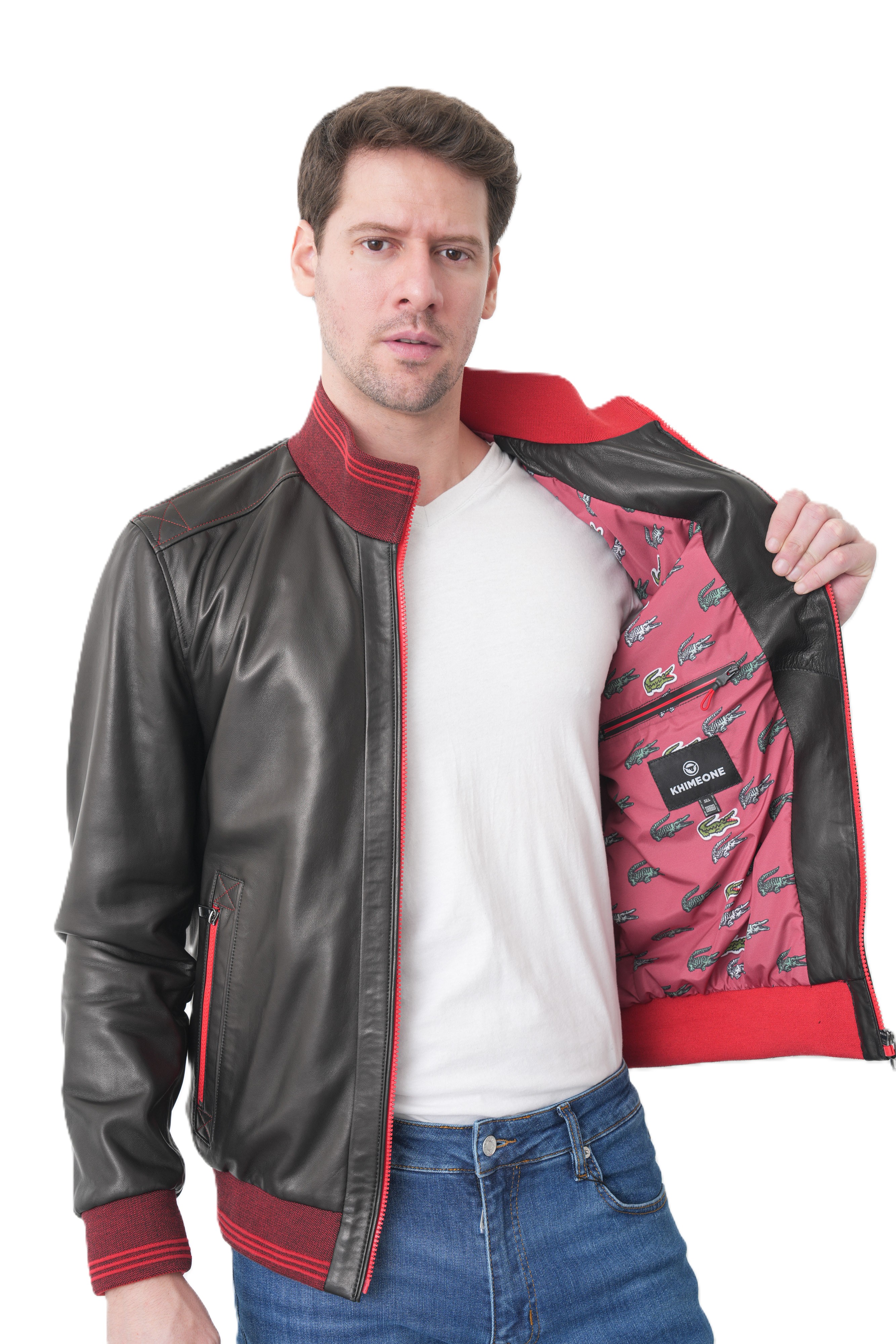 Мужская кожаная куртка бомбер KHIMEONE из натуральной кожи.Стиль, надежность и безупречное качество в одной детали гардероба. Эта демисезонная мужская куртка выполнена из высококачественной натуральной кожи мягкой выделки, которая отличается прочностью и благородным матовым блеском. Модель в стиле casual (кэжуал) идеально подходит для повседневной носки, вождения автомобиля и создания стильного образа.