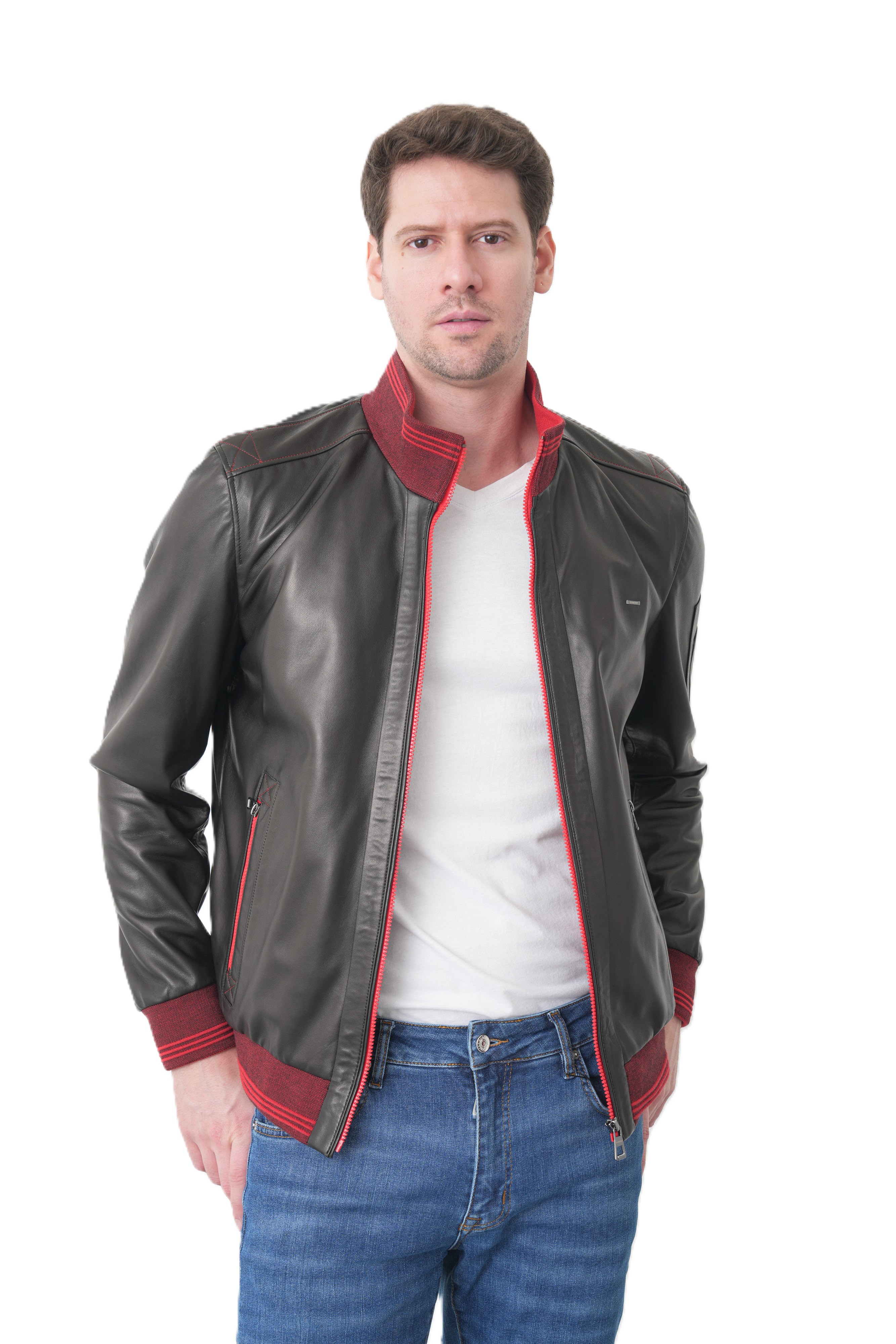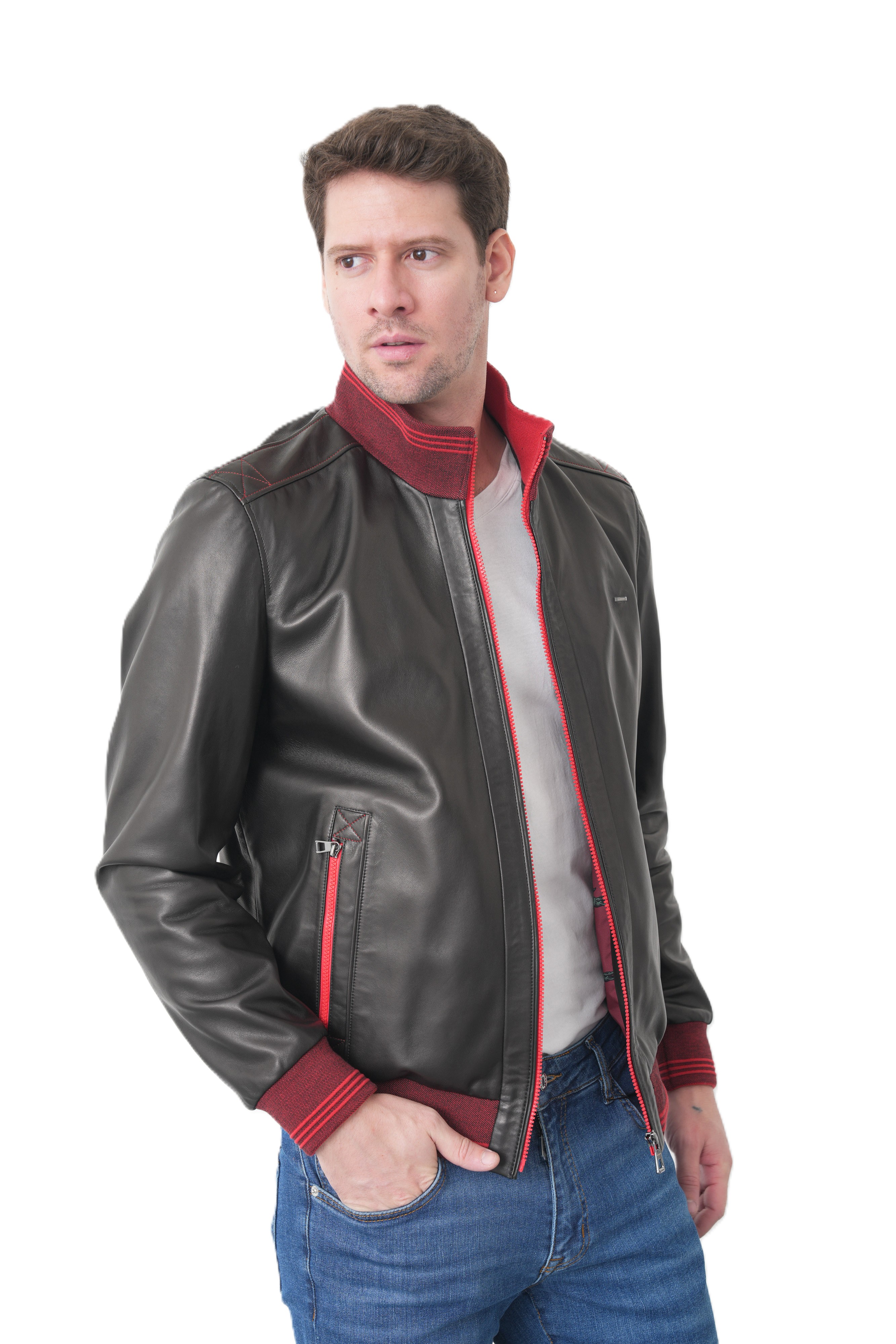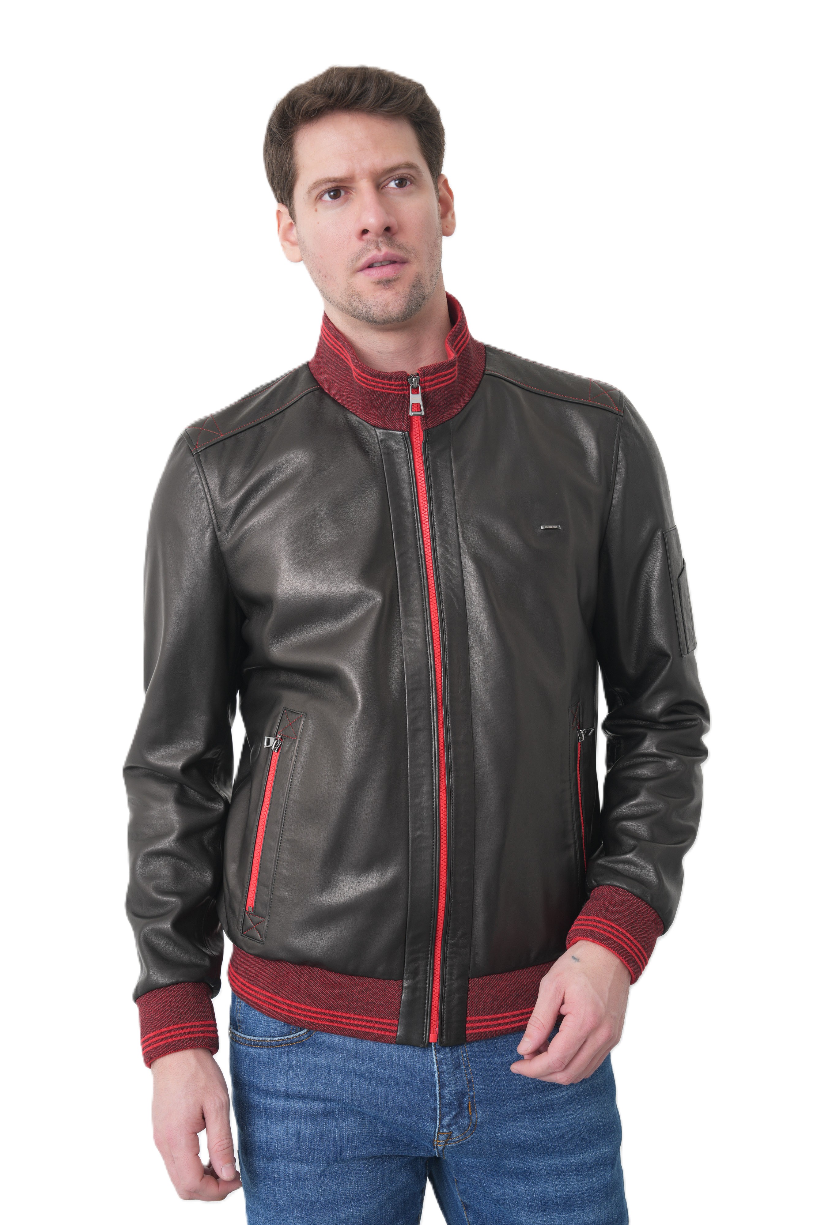 Мужская кожаная куртка бомбер KHIMEONE из натуральной кожи.Стиль, надежность и безупречное качество в одной детали гардероба. Эта демисезонная мужская куртка выполнена из высококачественной натуральной кожи мягкой выделки, которая отличается прочностью и благородным матовым блеском. Модель в стиле casual (кэжуал) идеально подходит для повседневной носки, вождения автомобиля и создания стильного образа.