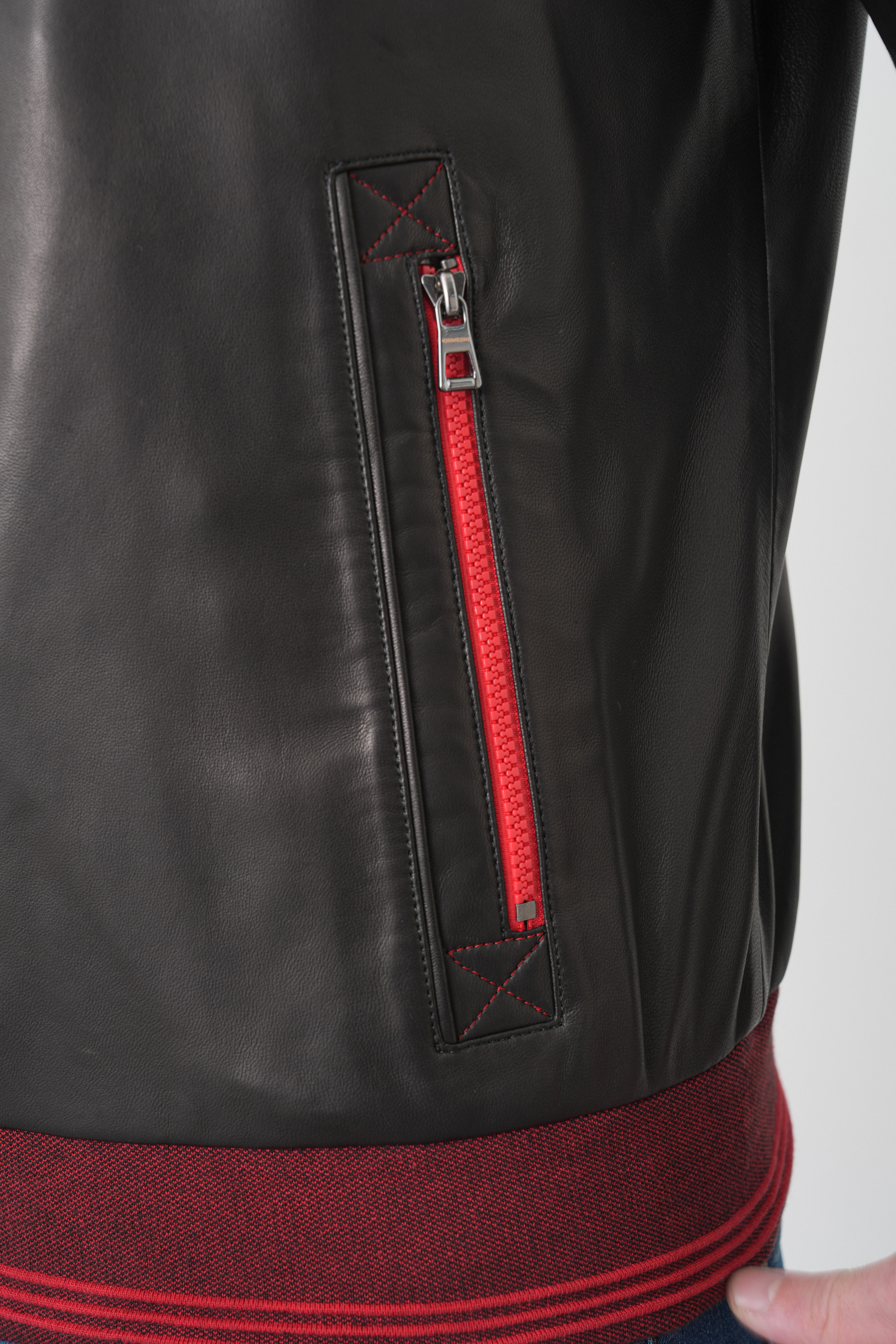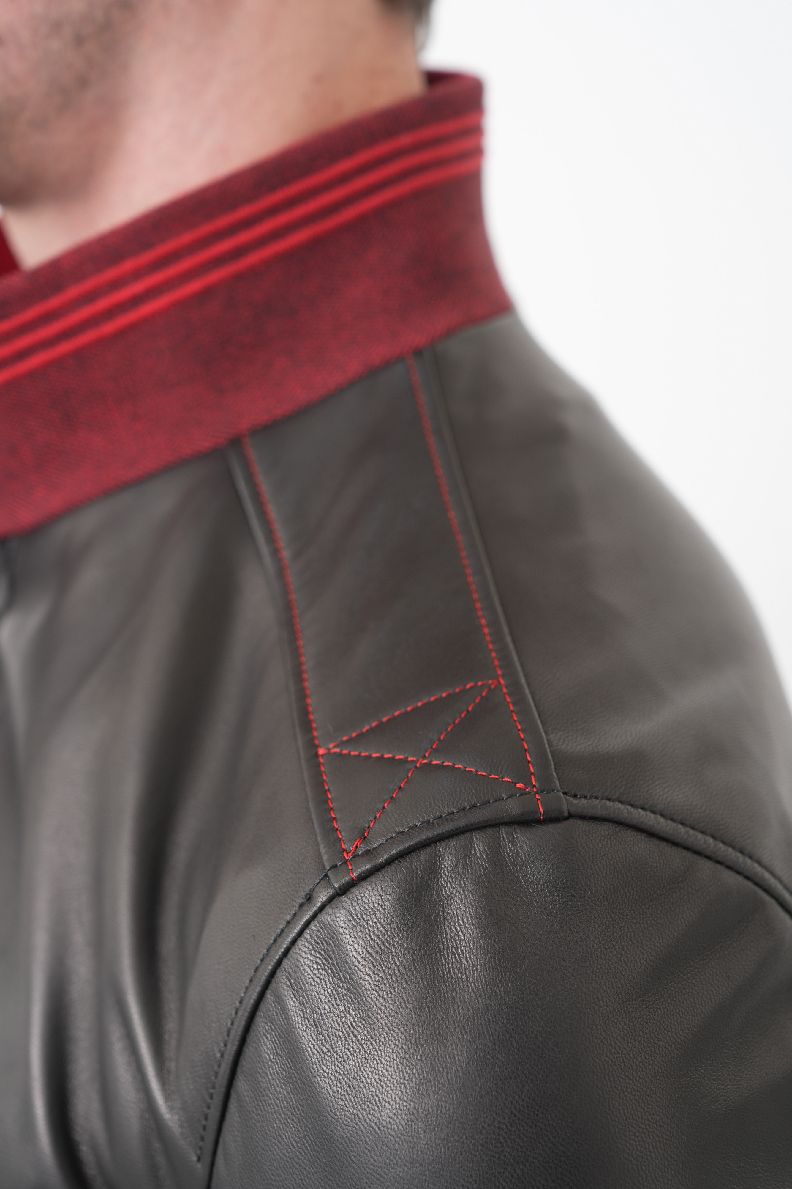 * Дизайнерские детали: Яркая красная прострочка на плечах и качественная фурнитура с красными акцентами на молниях подчеркивают индивидуальность владельца.