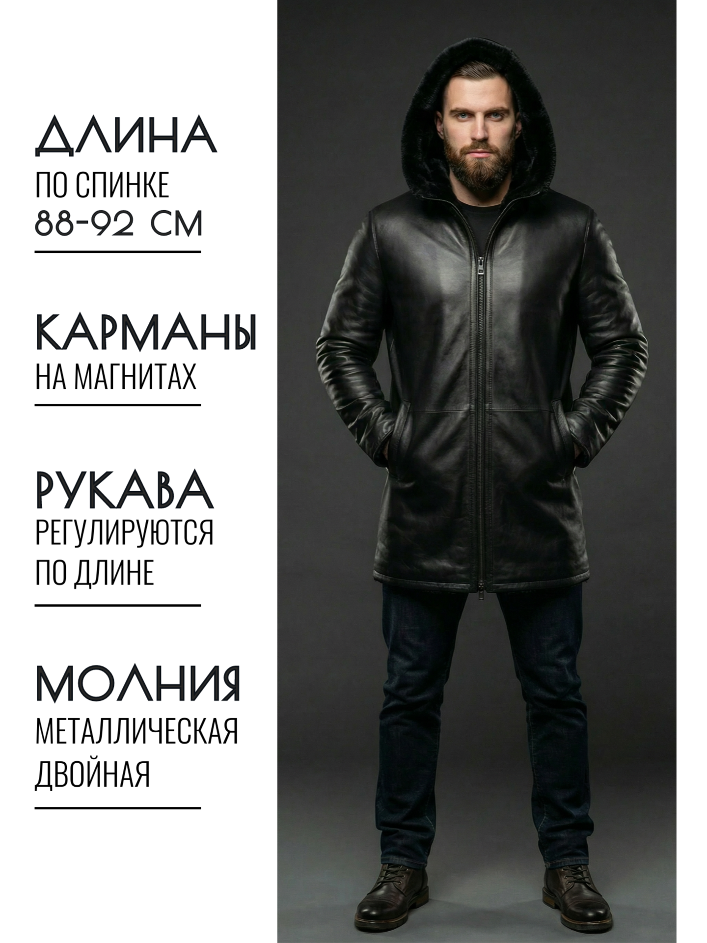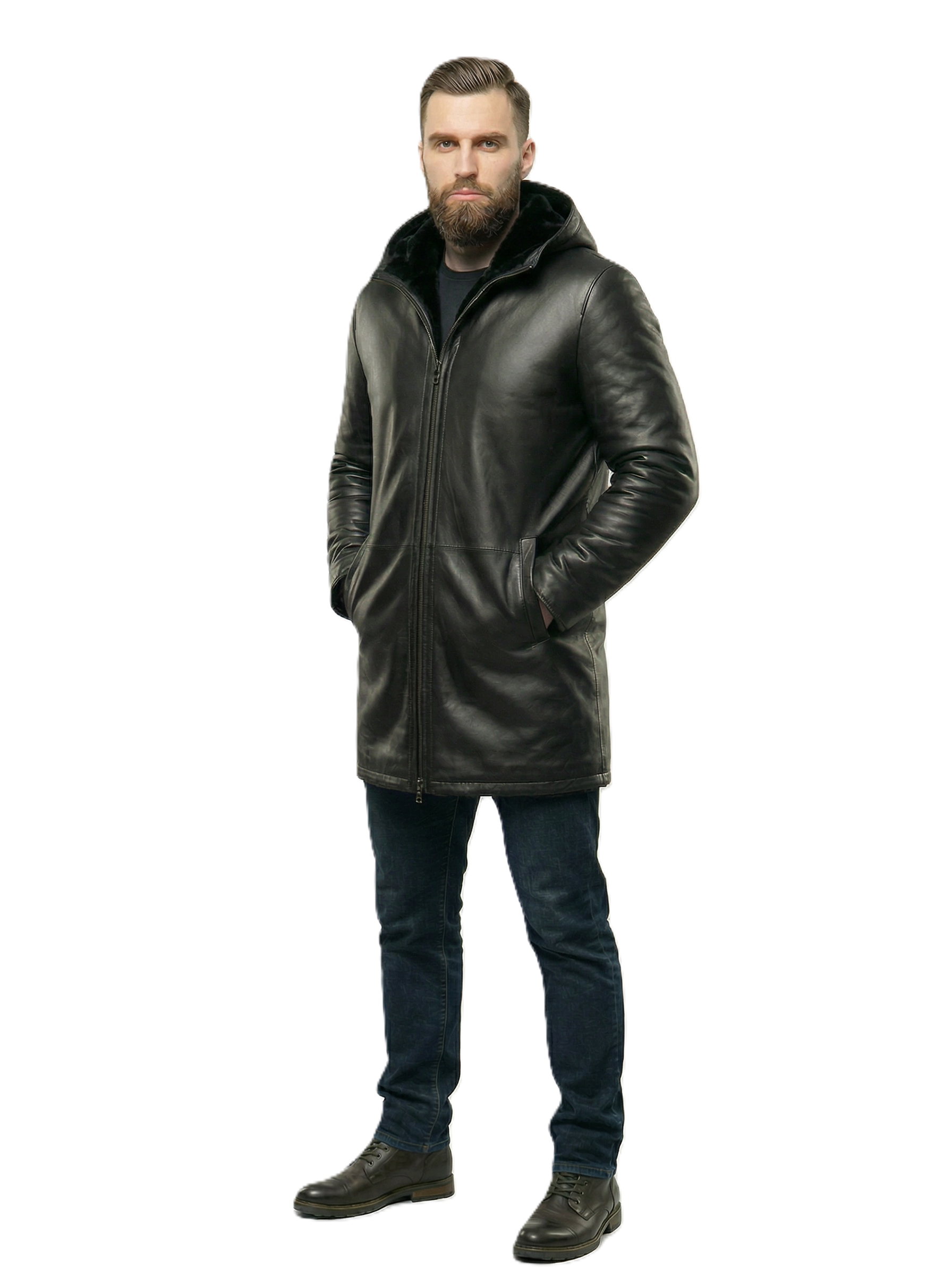 Мужская зимняя куртка KHIMEONE из натуральной кожи – это идеальный выбор для холодного сезона. Модель с прямым покроем и съемным капюшоном обеспечит комфорт и защиту от ветра и холода при температуре от 0°C до -20°C. Куртка утеплена натуральным мехом овчины, что гарантирует тепло даже в самые морозные дни. Прорезные карманы на магнитах и боковые молнии добавляют практичности, а лаконичный дизайн в черном цвете подойдет для повседневной носки, офиса и других случаев.