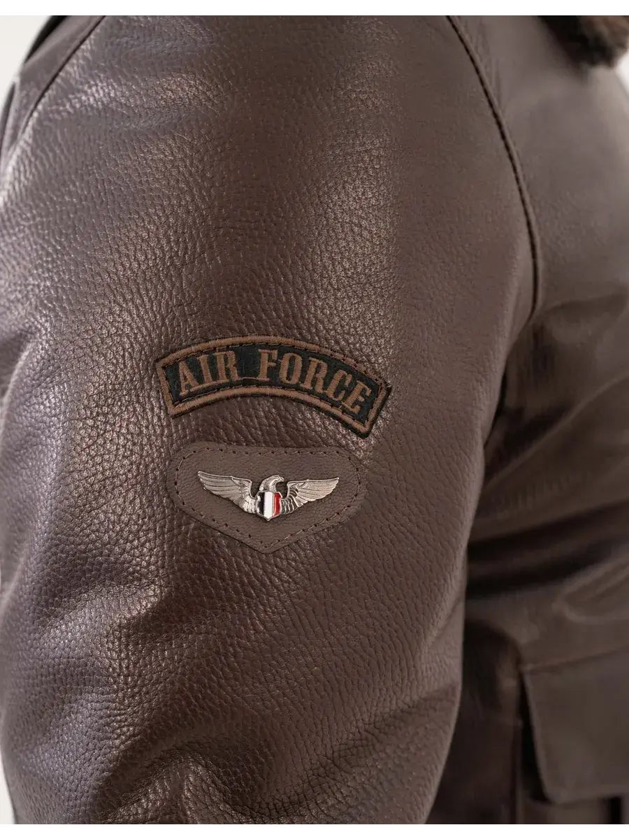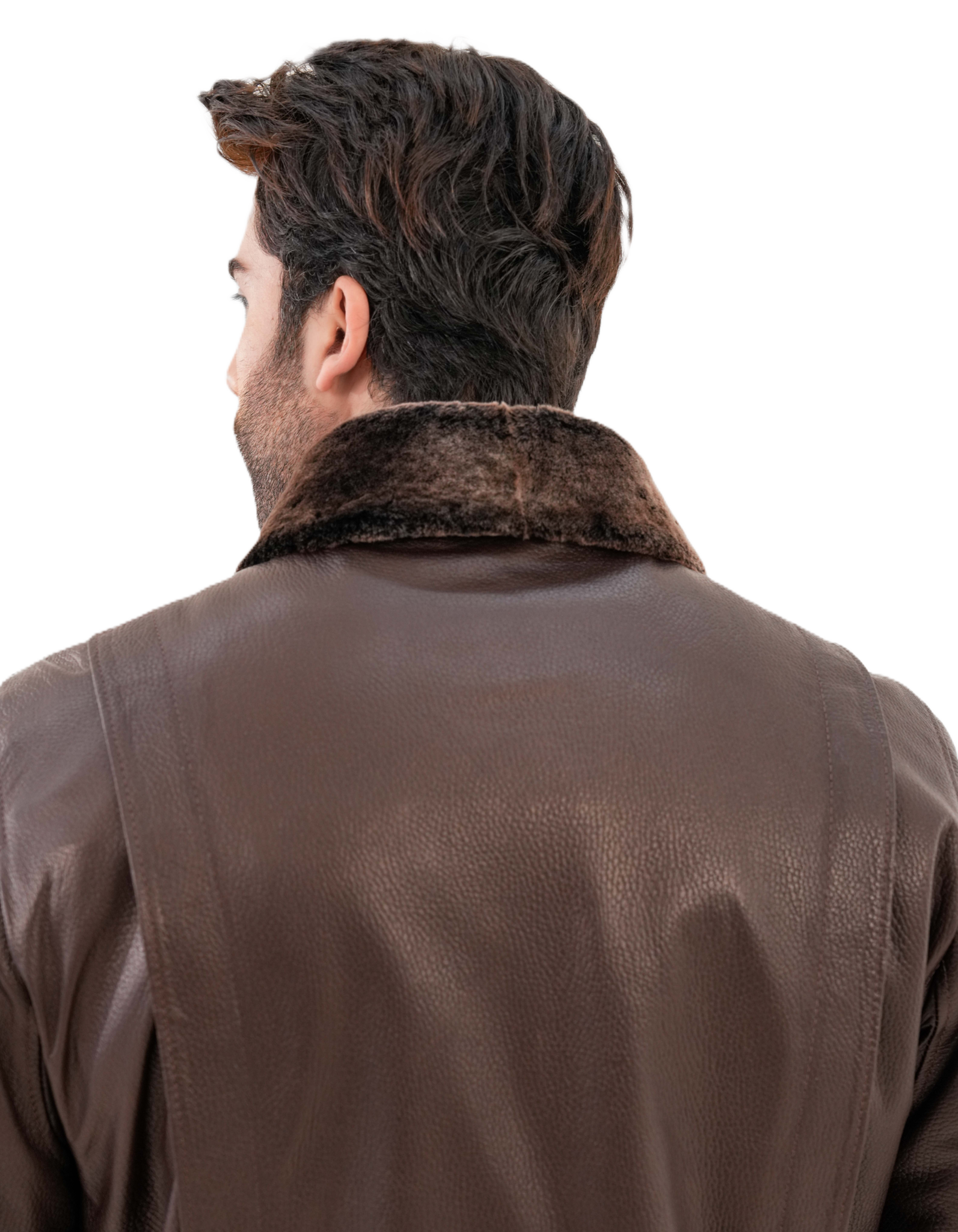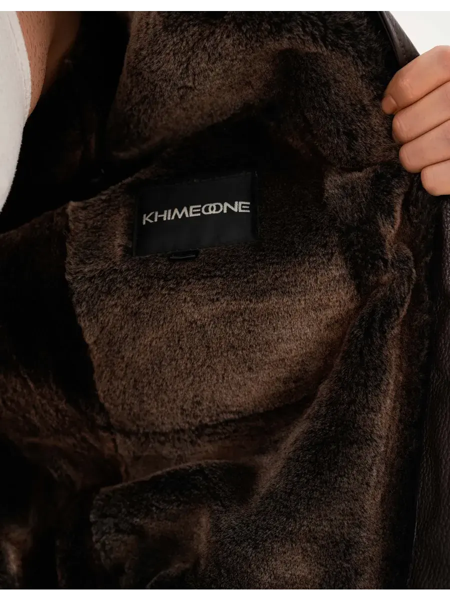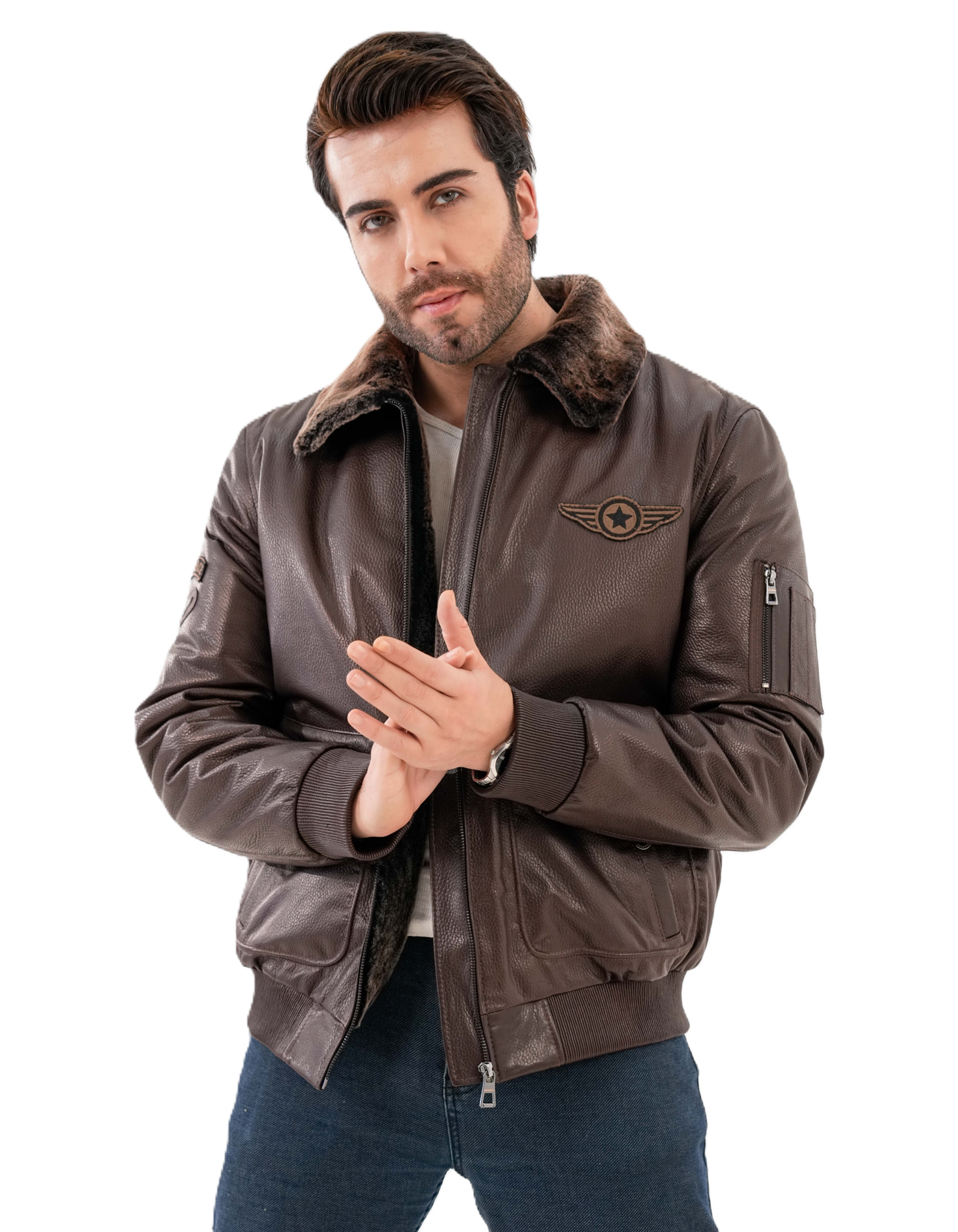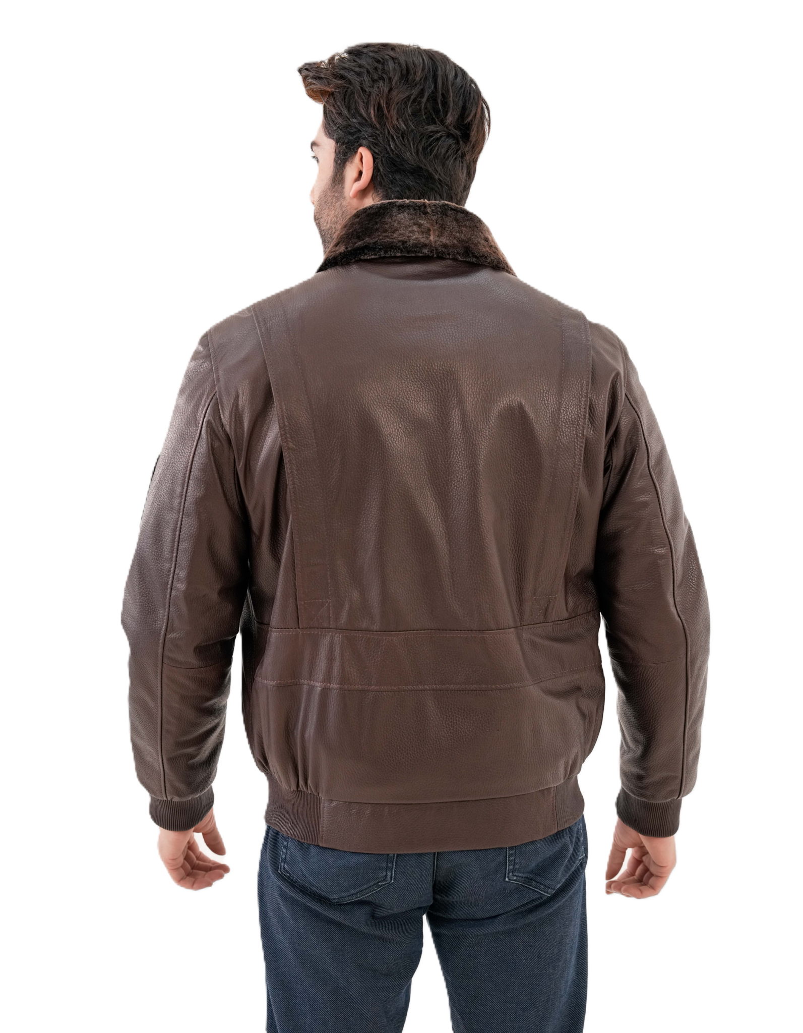 Куртка кожаная мужская зимняя "пилот" из натуральной кожи высокого качества на натуральном меху. Выполнена из кожи с "пористой" и неоднородной структурой подтверждающей натуральность, естественность кожи и предающей ей более дорогой вид в сравнении с "гладкой" кожей. Так же этот способ обработки кожи позволяет одежде сшитой из нее быть более износоустойчивее к царапинам и воздействию окружающей среды поэтому изделия из неё дольше сохраняют отличный внешний вид. Воротник и подкладка из натуральной овчины. Имеется четыре наружных кармана. Два боковых для рук и два с верхней загрузкой. Туда кладут ценные вещи так как из них исключено случайное вываливание. Два внутренних кармана на молнии. Кожа, мех и пошив-Турция.