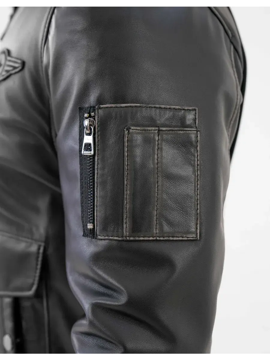Куртка кожаная на натуральном меху типа "пилот" от бренда KHIMEONE – это идеальный выбор для тех, кто ценит комфорт и стиль в холодное время года. Эта куртка выполнена из высококачественной натуральной кожи с подкладкой из теплого натурального меха, обеспечивая идеальную защиту от холода при температурах от 0 °C до -20 °C. Молниевая застежка и армейские нашивки добавляют куртке уникальный внешний вид, а гладкая фактура материала делает её универсальной для повседневного ношения. Куртка предназначена для мужчин, имеющих средний рост, и не имеет капюшона и опушек, что делает её легко адаптируемой под любую одежду. Прорезные карманы и утеплитель из меха обеспечивают удобство и тепло, а эффект потертости и дышащий материал добавляют уникальность и стиль. Эта куртка – отличный выбор для спортивного и повседневного ношения, сочетая в себе функциональность и модный дизайн.